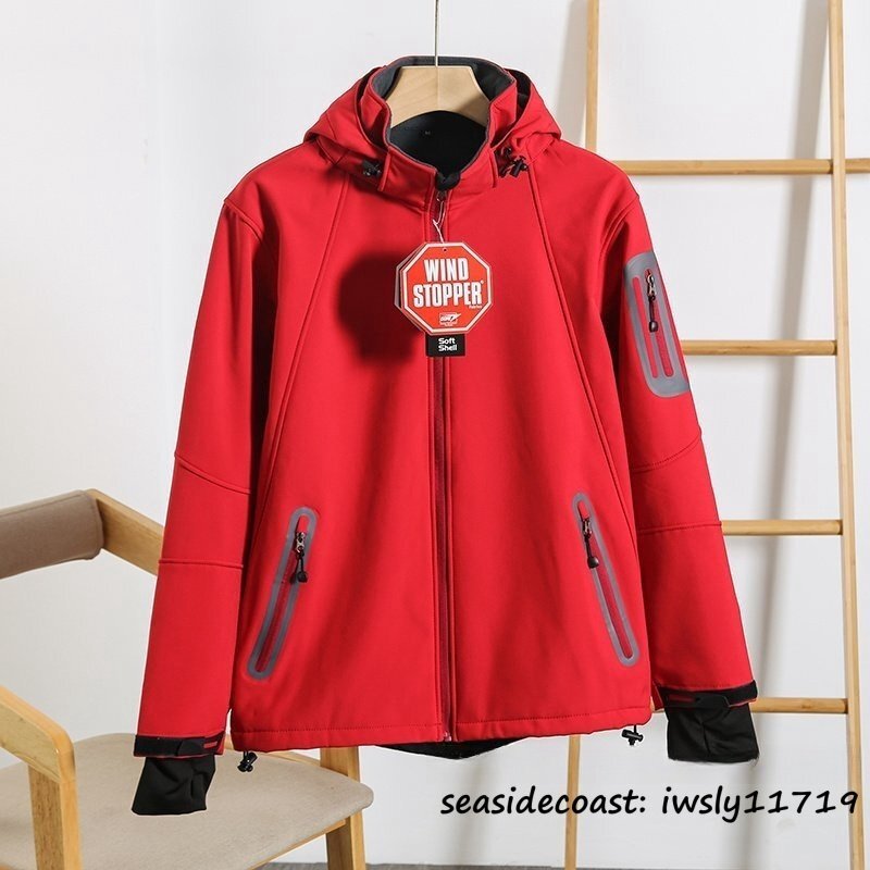 > 高機能素材★マウンテンパーカ メンズ フード付き 脱着可 裏起毛 ボアジャケット フリース 防風 防寒 防水 男女兼用 アウター レッド 2XL