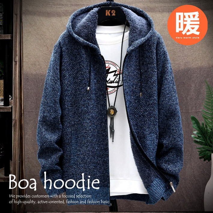 - パーカー ジャケット メンズ 着る毛布 杢カラー 裏ボア フリース セーター L ネイビー 7988029