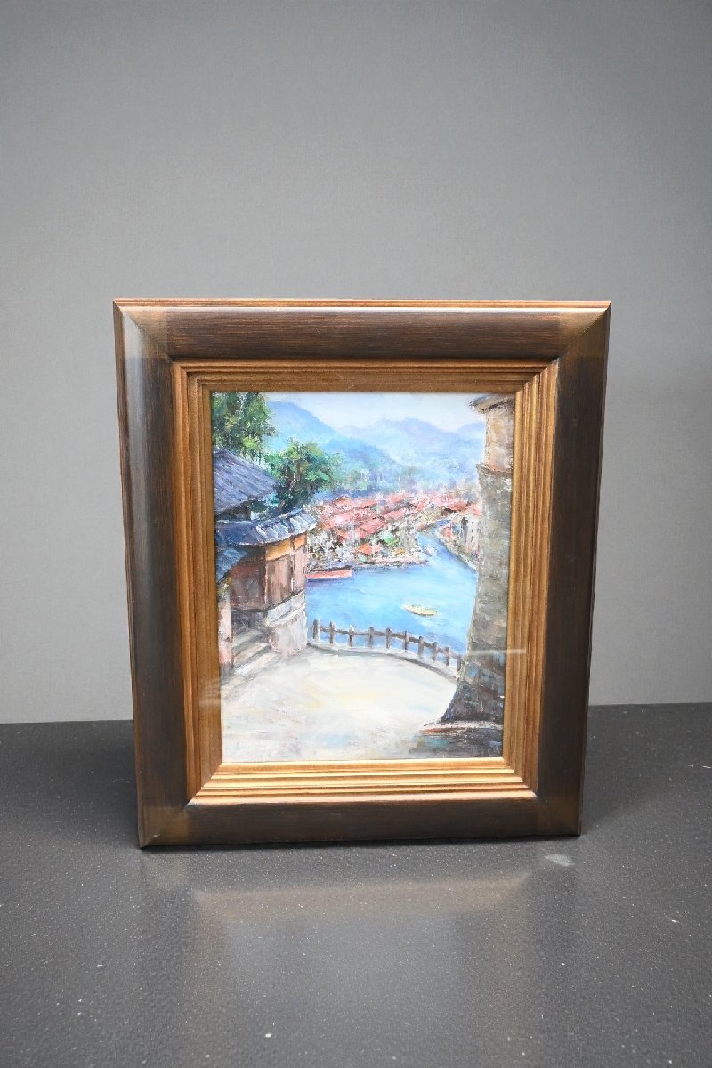 title:こげ茶とブロンズ色の木目模様の油彩額 木製額 F6号 モダン アート 古道具のgplus広島 2511i