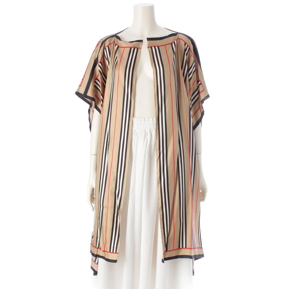 - バーバリー シルク ストライプ ケープ ポンチョ スカーフ ベージュ【中古】