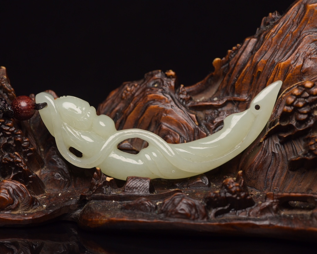 - 旧蔵 和田玉彫 飛天 根付 中国古玩 骨董品 時代物 稀少唐物