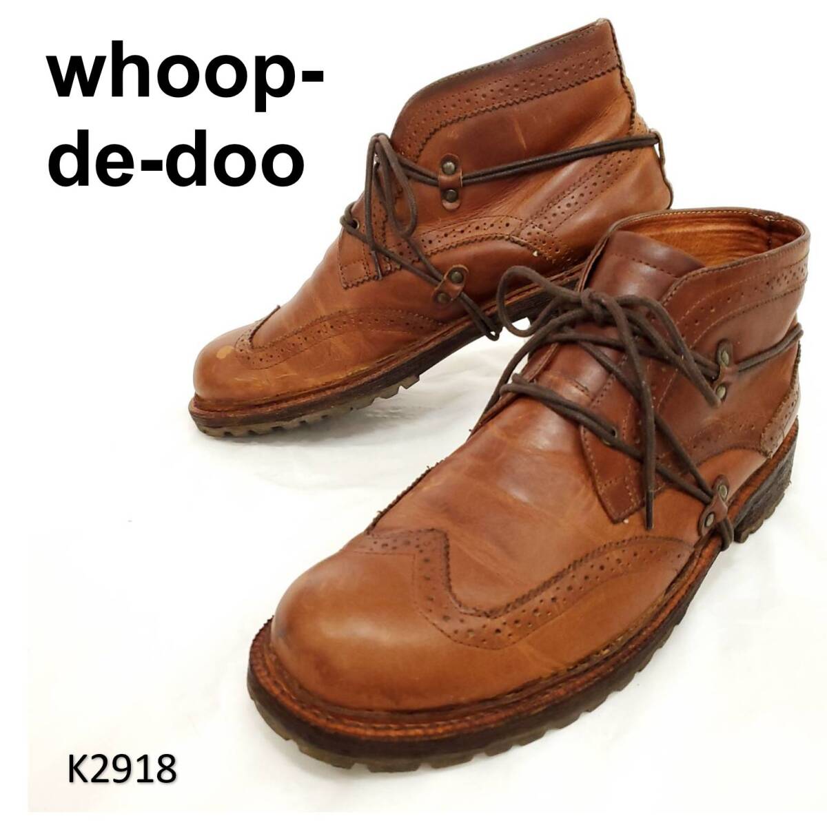 - フープディドゥ フーピー ウィングチップ レースアップ ブラウン 本革 レザー