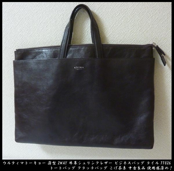 - ウルティマ トーキョー 薄型 2WAY 牛革 ビジネスバッグ ライル 77826 クラッチバッグ こげ茶系 中古良品 使用感薄め!送料無料!