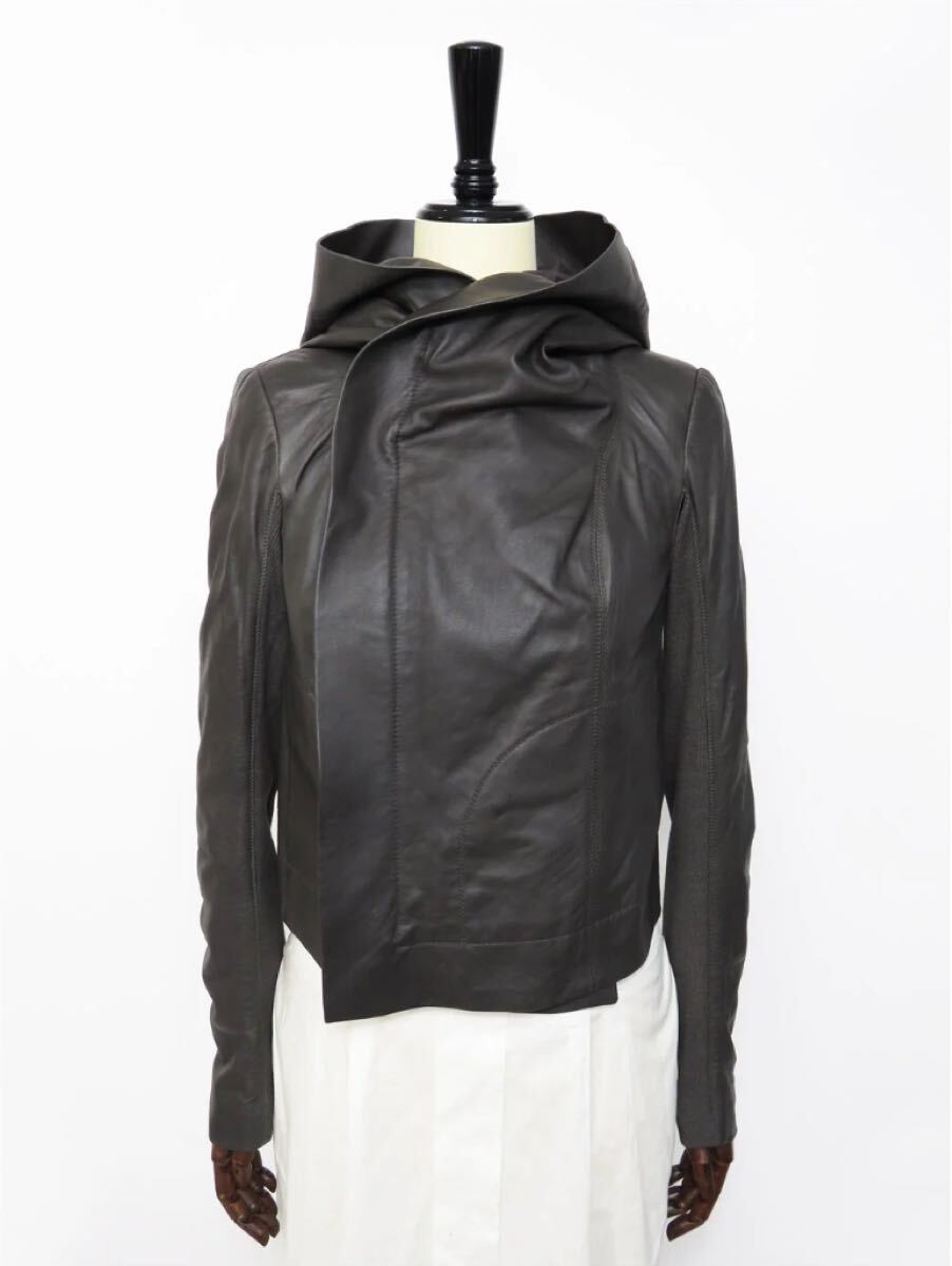 - 70705 Rick Owens / リックオウエンス フーデット レザー バイカー ジャケット