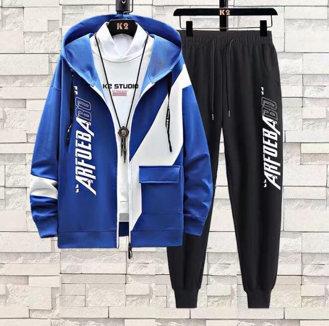 - 上質メンズ ジャージ スウェット セットアップ 上下セット 春秋 パーカー トレーナー トレーニングウェア 部屋着 運動着 ブルー 4色S~3XL