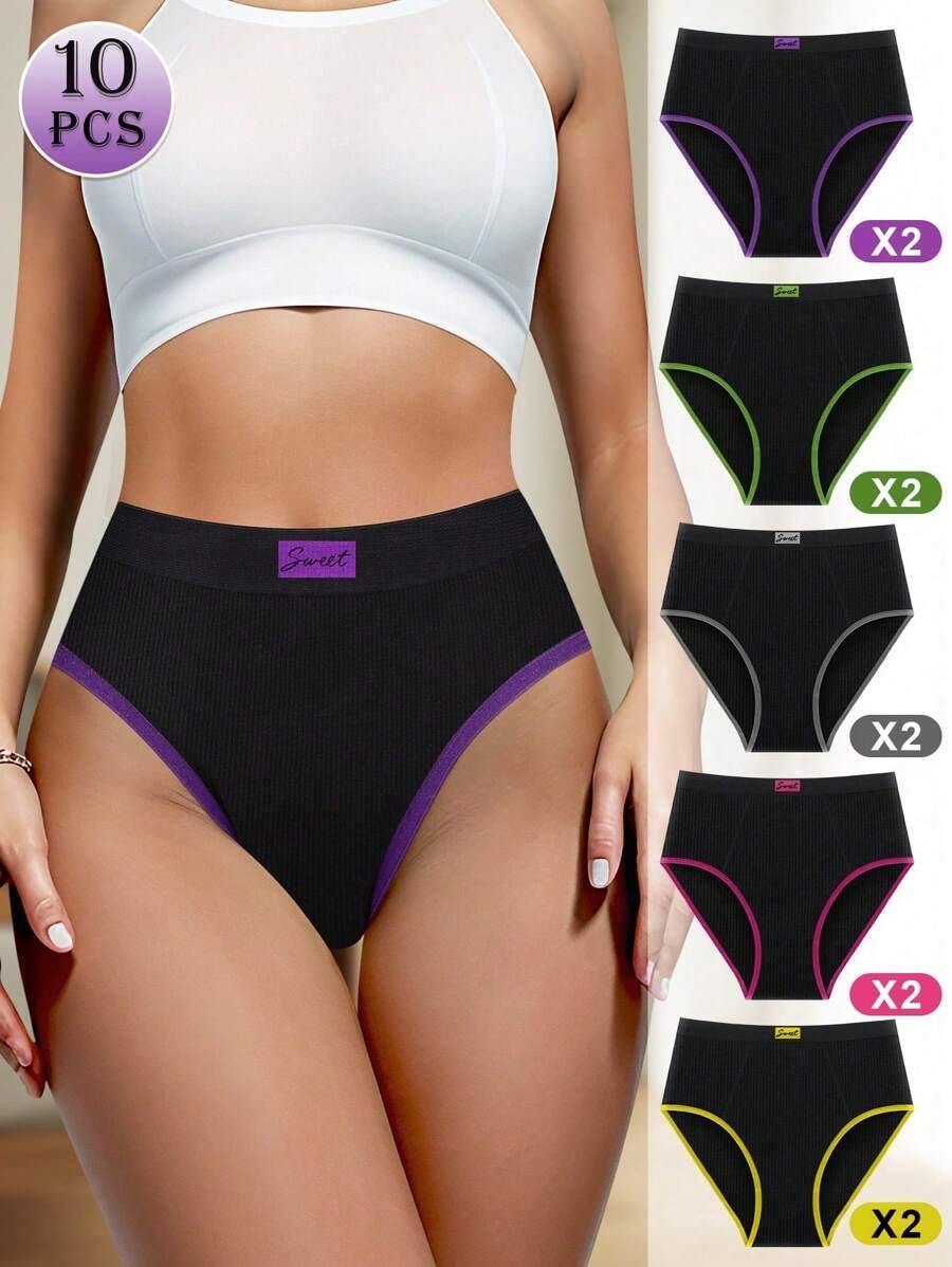 - インティメート ショーツ 10枚入りレディース シームレスショーツ、ファッション配色、快適フィット、ブラック