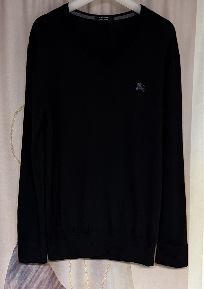 - バーバリー ブラックレーベル ホースロゴ刺繍 羊毛 Vネック ニット