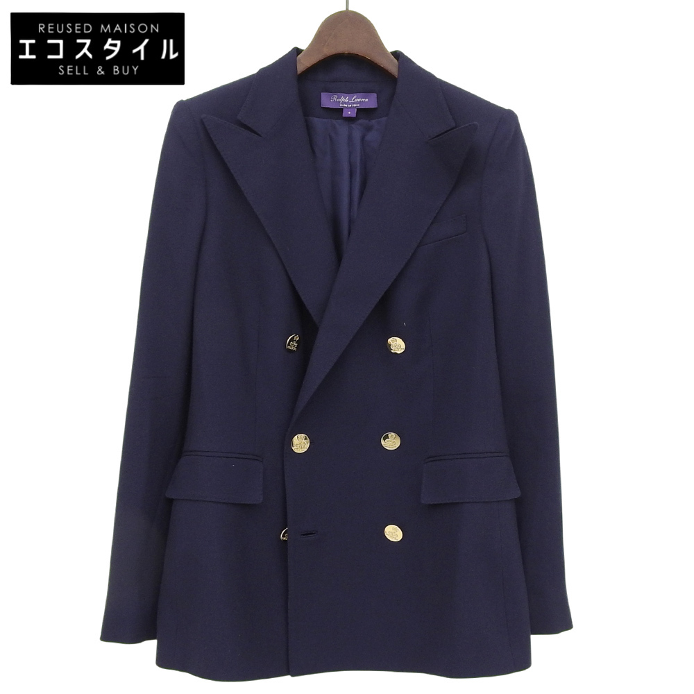 > 美品 RalphLauren PURPLE LABEL ラルフローレン パープルレーベル ダブルブレスト フィットブレザー レディース カシミヤ100 ネイビー 8