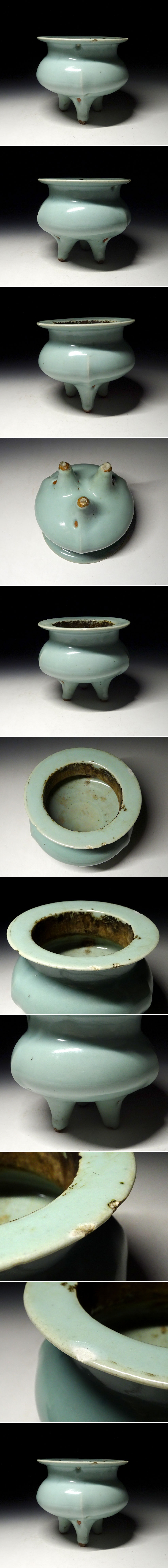 > 緑屋c■ 中国古玩 砧青磁 香炉 龍泉窯 唐物 時代物 i9/10-6542/7-3#60