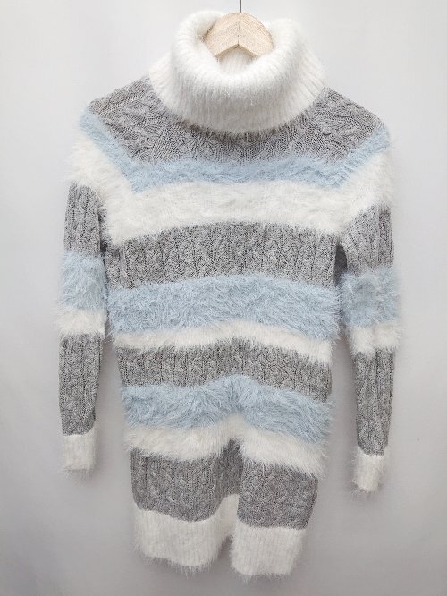 > ◇ CECIL McBEE セシルマクビー フェザーニット 長袖 チュニック サイズM ホワイト グレー ブルー レディース メンズ P