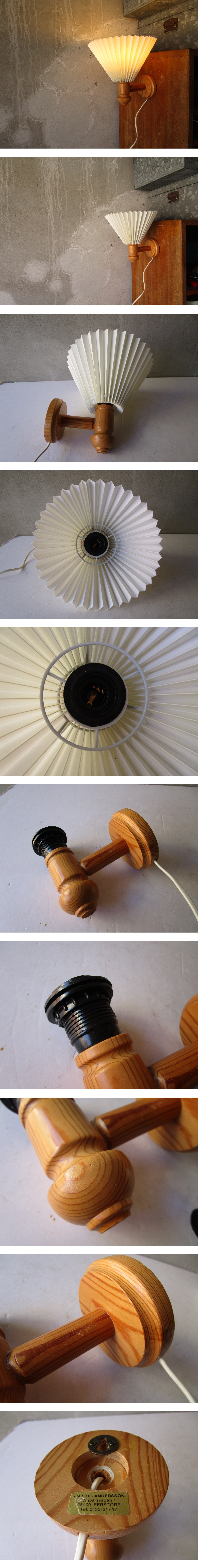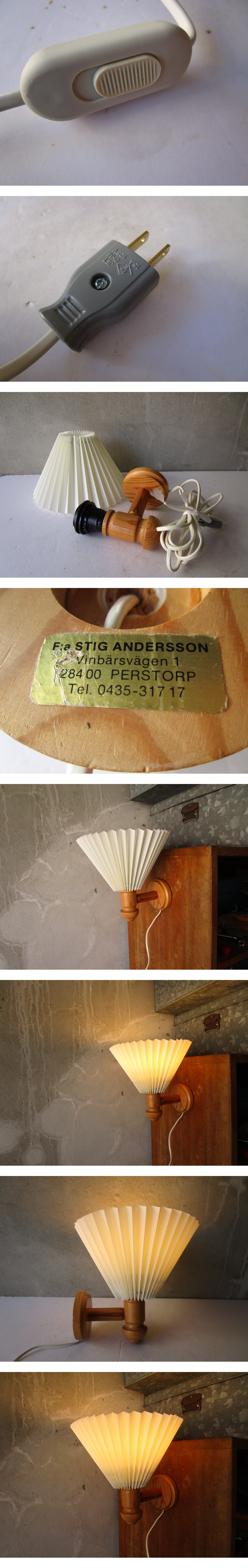 > 北欧 ヴィンテージ スウェーデン Stig Andersson プリーツシェード付き ターンド加工 木製 ウォールランプ スーホル/Le Klint/ウェグナー