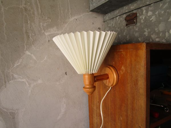 - 北欧 ヴィンテージ スウェーデン Stig Andersson プリーツシェード付き ターンド加工 木製 ウォールランプ スーホル/Le Klint/ウェグナー