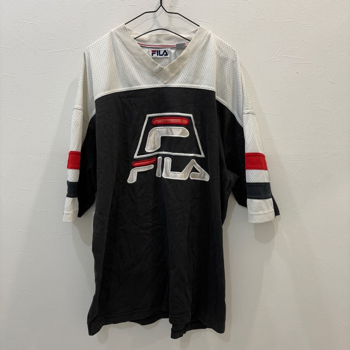 - QY484 FILA フィラ 半袖tシャツ ツートン ビッグロゴ メンズL