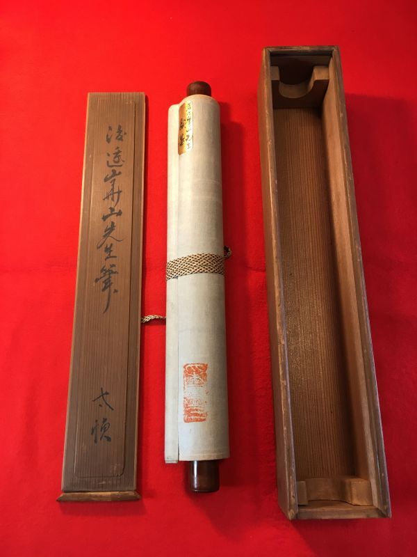 豊前商工会議所創立20周年協賛明治百年記念「先哲・志士遺墨展」紙片付き(出品の掛軸か?)