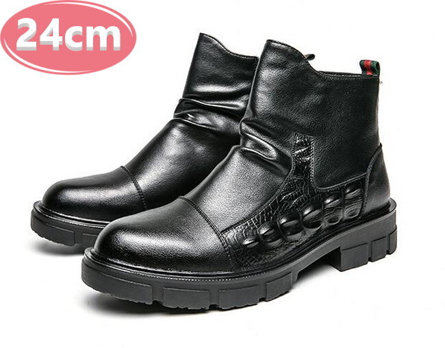 > サイドジッパー付き メンズ ビジネス レザー シューズ ブラック 24.0㎝ 革靴 靴 カジュアル 屈曲性 通勤 軽量 インポート品【n150】