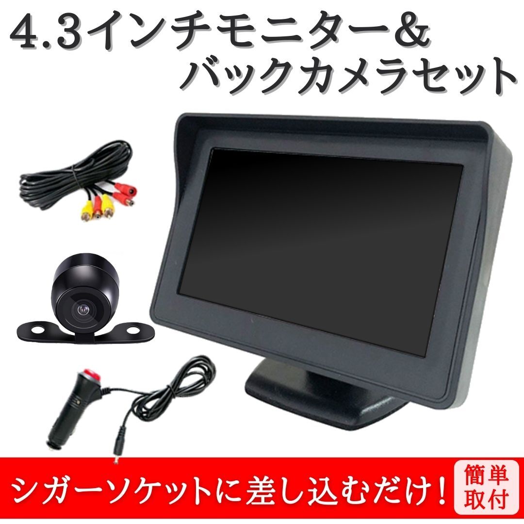 > 4.3インチ モニター バックカメラ セット ケーブル一体型配線 シガー給電 取り付け簡単 駐車支援システム 12V車用【MO01】