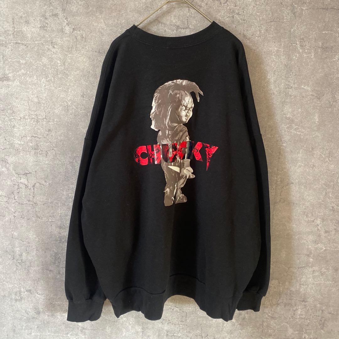 - チェッキー Movieスウェットトレーナー ホラー 2XLサイズ 黒 刺繍ロゴ