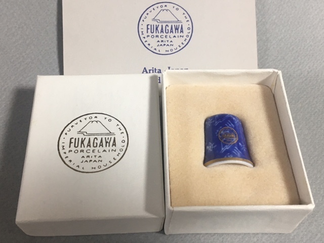 - ◎深川製磁 染付指貫 シンブル 「深川マーク」 ◎極希少 箱付e