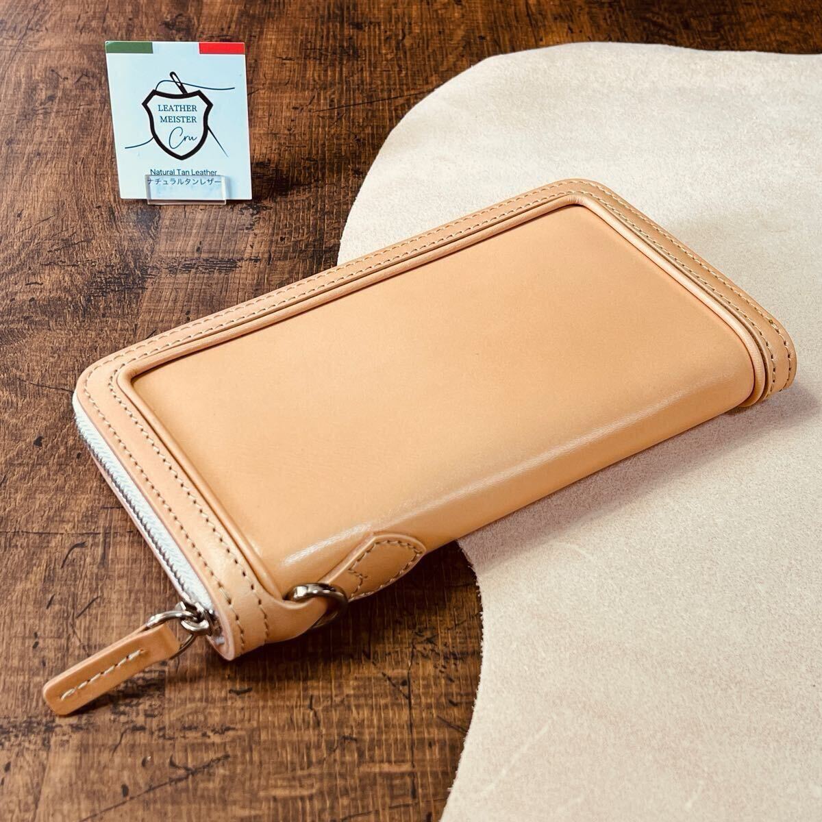 - 生成り サドルレザー ヌメ革 ラウンドファスナー メンズ財布 長財布 本革 ハンドメイド YKK 送料無料 1円 牛革 新品 未使用 革財布 手縫い