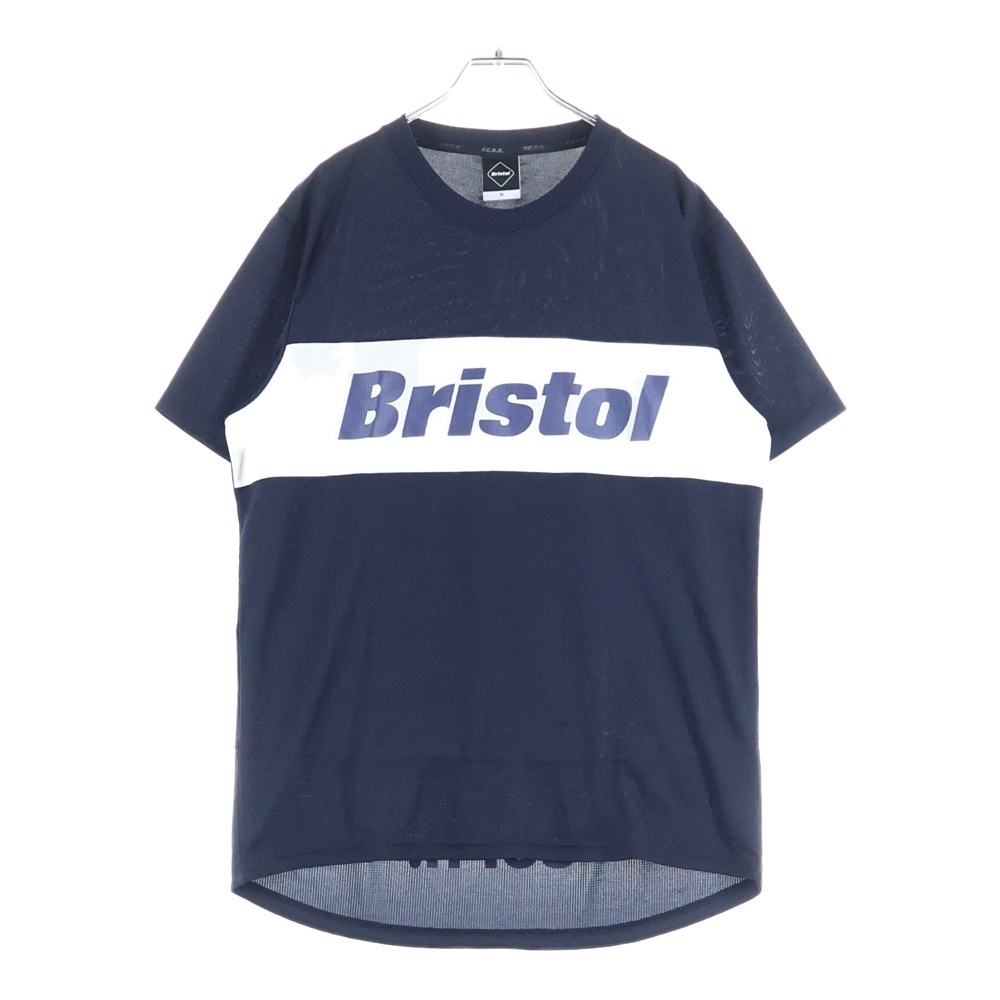> エフシーアールビー TRAINING BIG TEE トレーニングビッグT ロゴプリント素材切替 クルーネック半袖Tシャツカットソー ネイビー