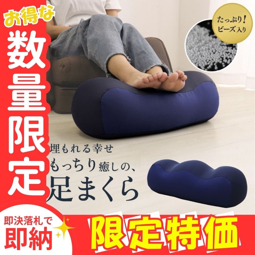 > 限定セール【ネイビー】足枕 フットピロー ビーズクッション 足置き フットレスト オットマン 足まくら リラックス ピロー むくみ 腰痛解消