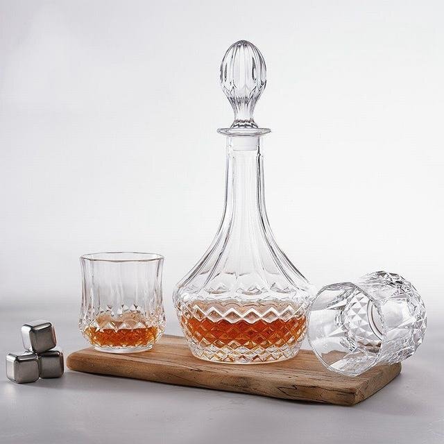 > 650mlデカンタ+グラス4個セット ウイスキーデカンタ 酒デキャンタ ヴィンテージ風 ウィスキーボトル ブランデー ウイスキーグラス