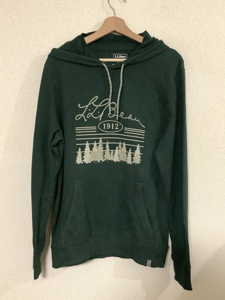 - L.L BEAN エルエルビーン ロゴプリント スウェットパーカー ダークグリーン アウトドア キャンプ カジュアル メンズ S