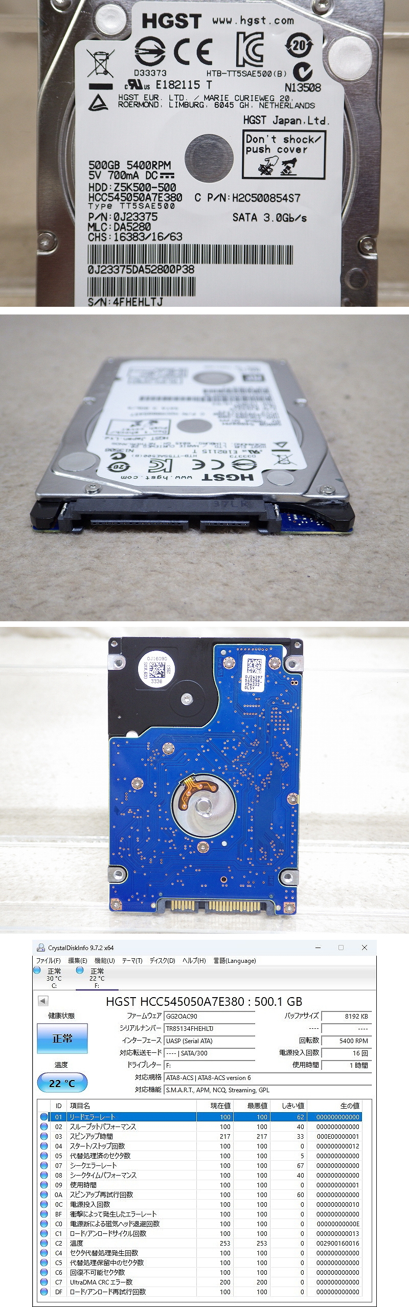 > Kネま2174 TGST 2.5インチ SATA 内蔵HDD 500GB HCC545050A7E380 パソコン周辺機器 PCパーツ ハードディスク