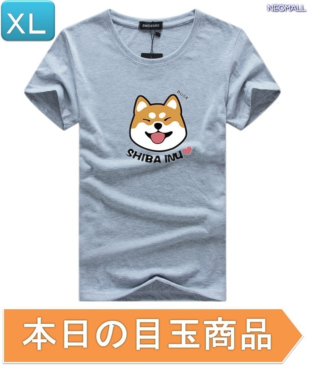 - 本日のお買得 ☆ 丸首 半袖 Tシャツ【345】 グレー XLサイズ トップス シャツ シンプル イラスト シルエット 春夏