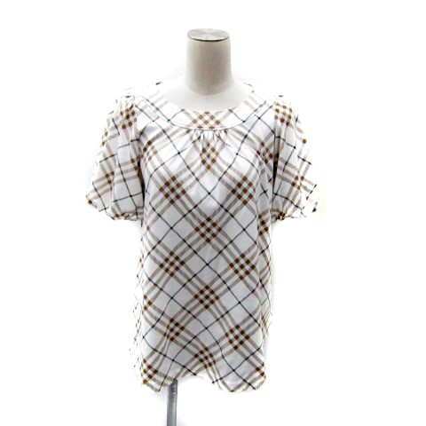 - バーバリーブルーレーベル カットソー 半袖 ラウンドネック パフスリーブ チェック柄 38 M 白 ホワイト /SY25 ■GY53 レディース