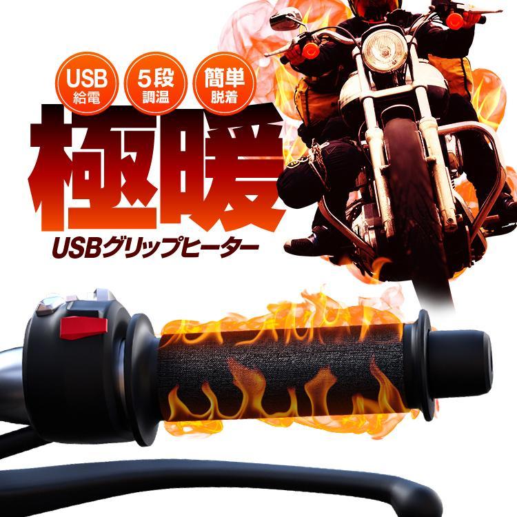 - USB給電グリップヒーター 巻き式 5段階調温 面ファスナーで簡単脱着 IP67防水 ホットグリップ 水洗い LP-UGH974G1