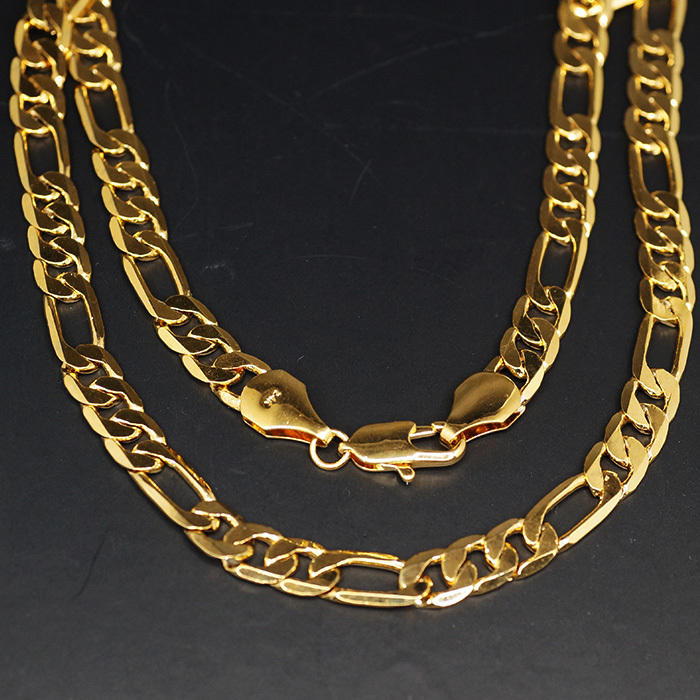 > [NECKLACE] 24K GOLD PLATED FIGARO CHAIN MATINEE LONG LENGTH 6面カット フィガロチェーン ゴールド ネックレス 8x660mm (40g)