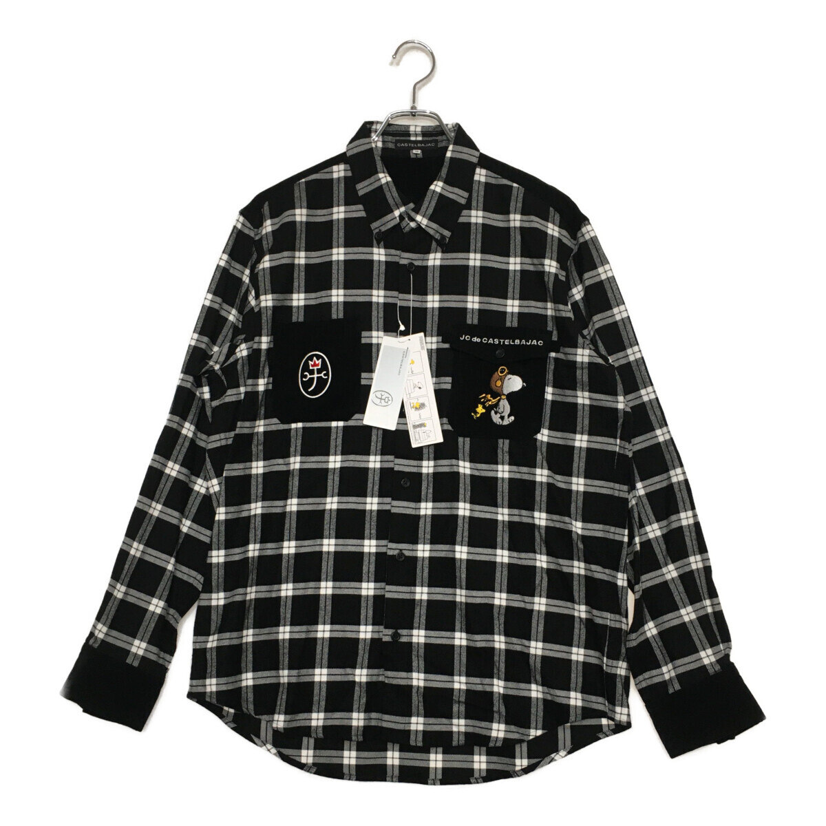 > coco 未使用品 カステルバジャック メンズ 長袖シャツ 48(L) 黒系 チェック スヌーピー ボタンダウン レターパックプラス発送可 119376