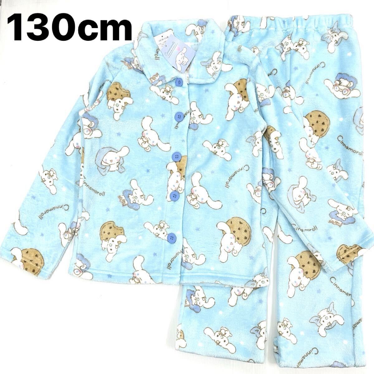 - 新品64648 シナモロール シナモン 130cm ライトブルー 前開き長袖ミンクフリースパジャマ上下セット ルームウェア ガールズ ジュニア子供