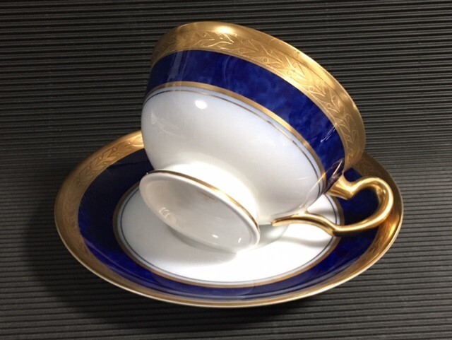 - ◎未使用 大倉陶園 セーブルブルー雲模様 金蝕 カップ&ソーサー◎z17.39希少
