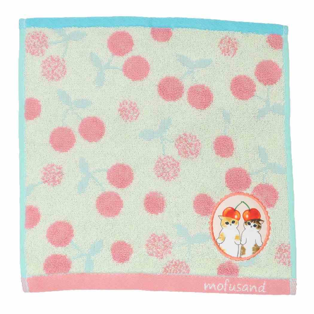 > モフサンド mofusand キャラクター ミニタオル ジャガードハンカチタオル さくらんぼにゃんドット