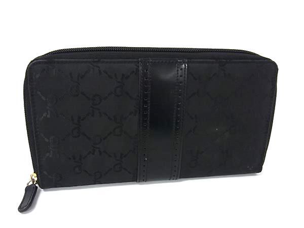 > Roberta di Camerino ロベルタ ディ カメリーノ ナイロン×レザー ラウンドファスナー 長財布 ウォレット 札入れ ブラック系 DK2839
