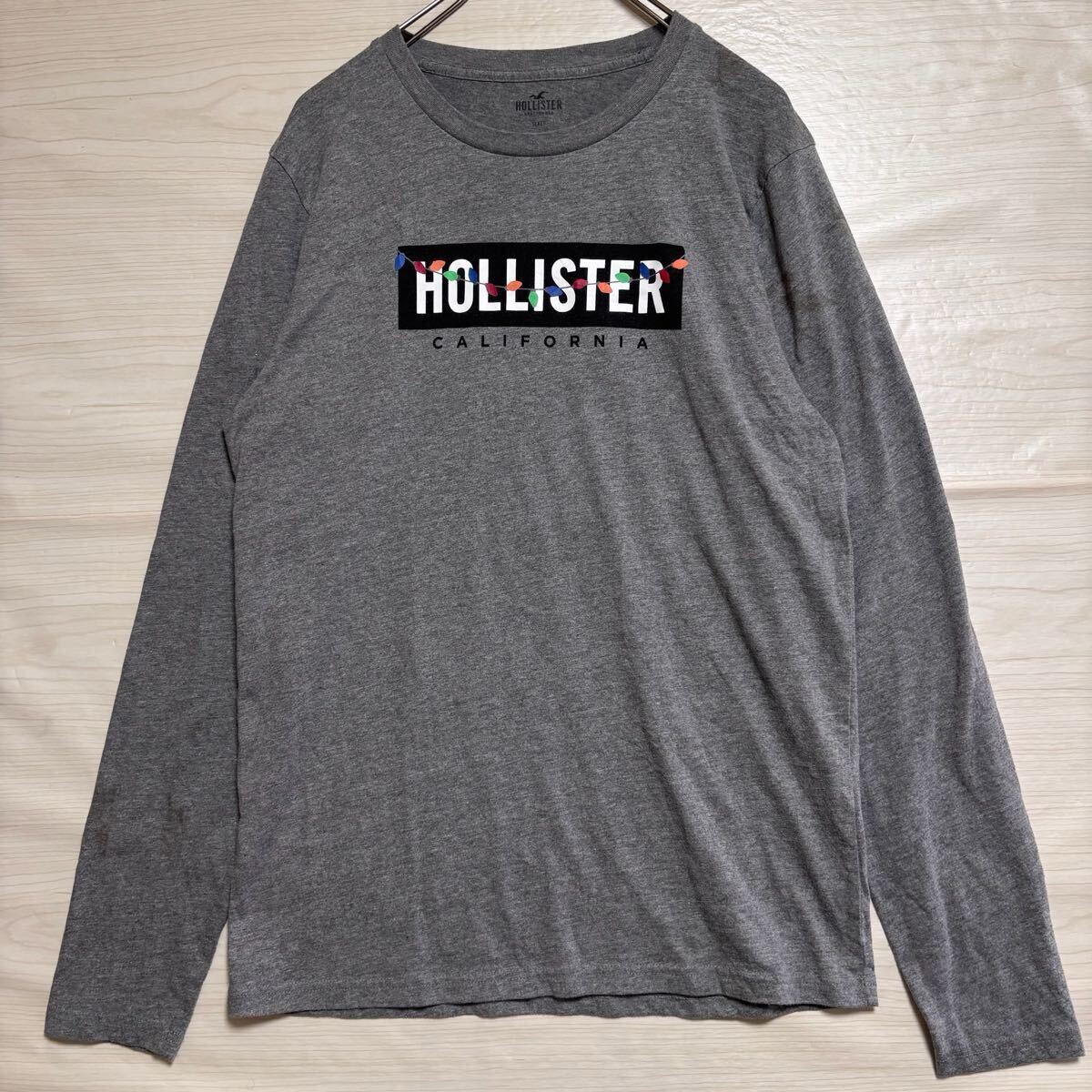 > HOLLISTER ホリスター ロンT 長袖Tシャツ 長袖カットソー ビックロゴプリント クルーネックサイズM グレー コットン メンズ トップス(46)