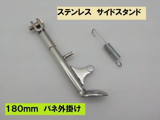 > VT★☆(16)汎用 ステンレスステンレスサイドスタンド 180mm バネ外掛け(モンキー DAX シャリー エイプ スーパーカブ モトラ)