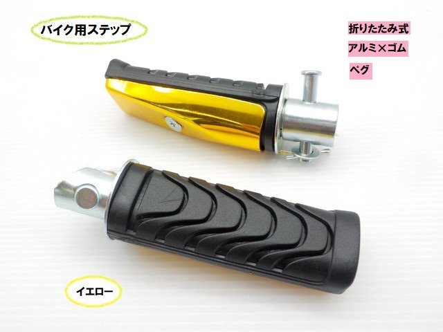 - TH56★☆汎用バイク用ステップ 折りたたみ式 アルミ×ゴム(ペグ)イエロー(ホーク バリオス ハーレー SR400 モンキー JAZZ)