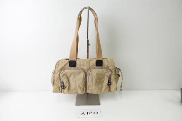 - 【k1822】KIPLING キプリング 2way ショルダーバッグ ハンドバッグ ベージュ ナイロン