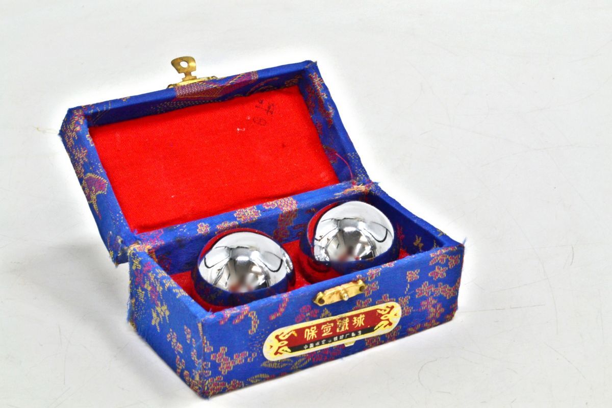 - (1295S 1119R5) 1円~健身球 シルバー 保定鐵球 マッサージボール オルゴールボール 音玉 手ツボ 足ツボ サウンドボール 足裏 太極拳身球