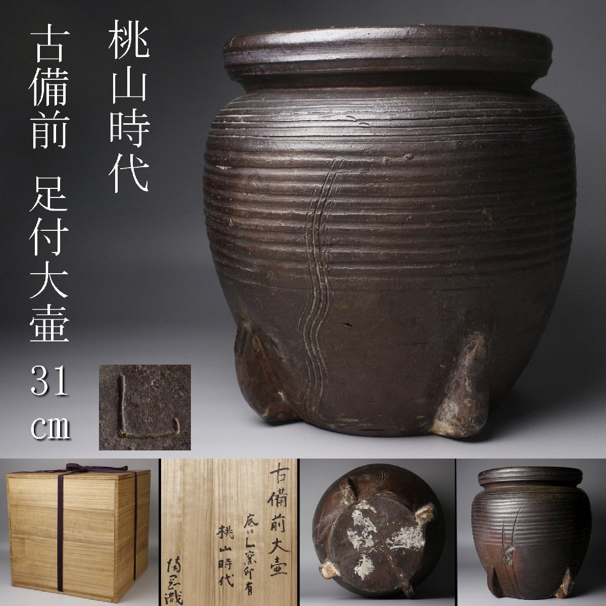 > 【LIG】桃山時代 古備前 足付大壷 31㎝ 花器 在陶印 古美術品 満岡忠成識箱 [.RY]25.11