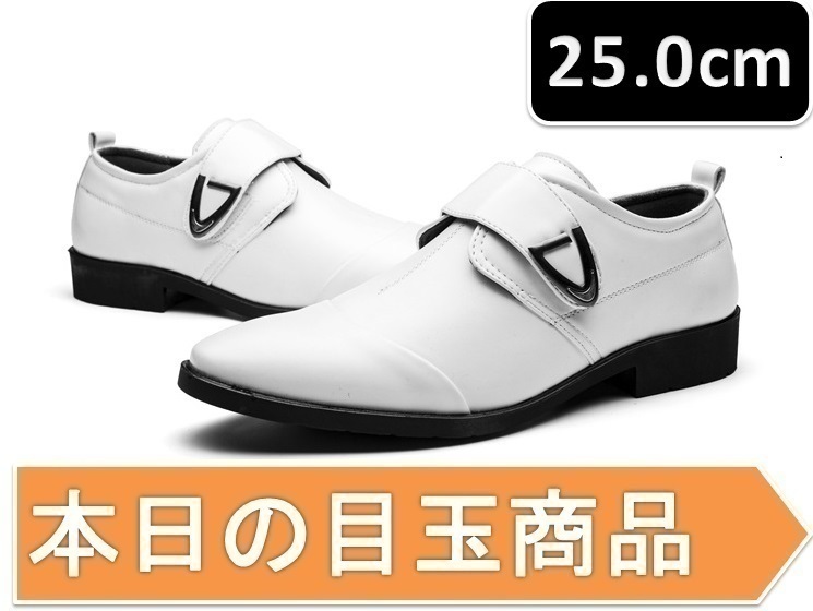 - 本日の目玉 ☆ メンズ ビジネス レザー シューズ ホワイト サイズ 25.0cm 革靴 靴 カジュアル 屈曲性 通勤 軽量 【207】