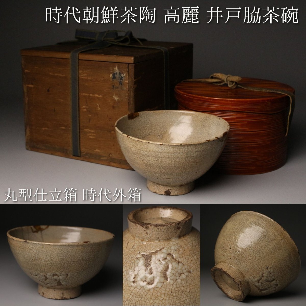 - 【LIG】時代朝鮮茶陶 高麗 井戸脇茶碗 丸型仕立箱 時代外箱 金継 李朝 古美術品 数奇者収蔵品[.RP]25.11