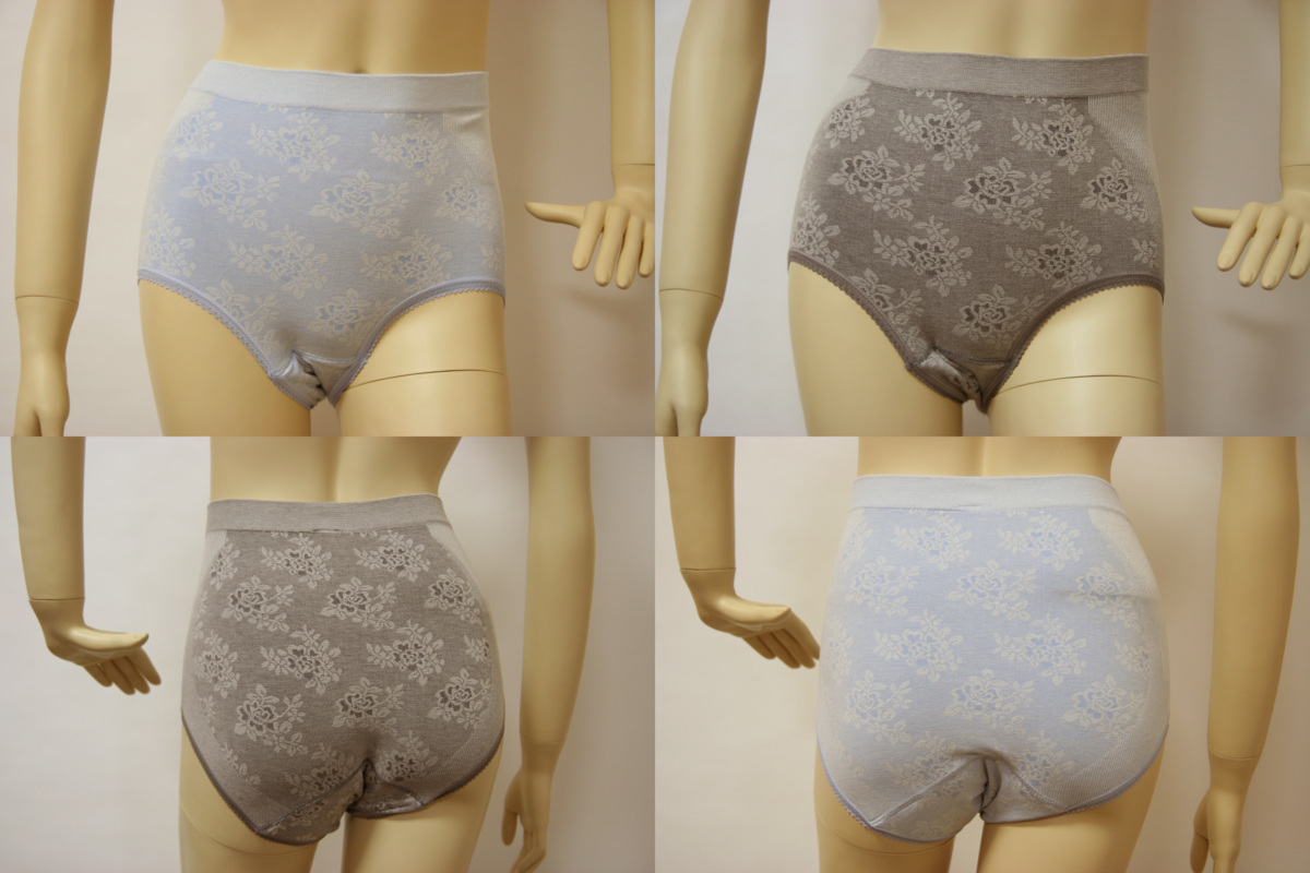 > 送料無料◆2色組◆綿混素材◆快適フィット◆成型安心ショーツ(LL~3L/ブルー&グレー)抗菌・防臭加工◆縫い目が無い◆尿漏れ対策◆AT-6789