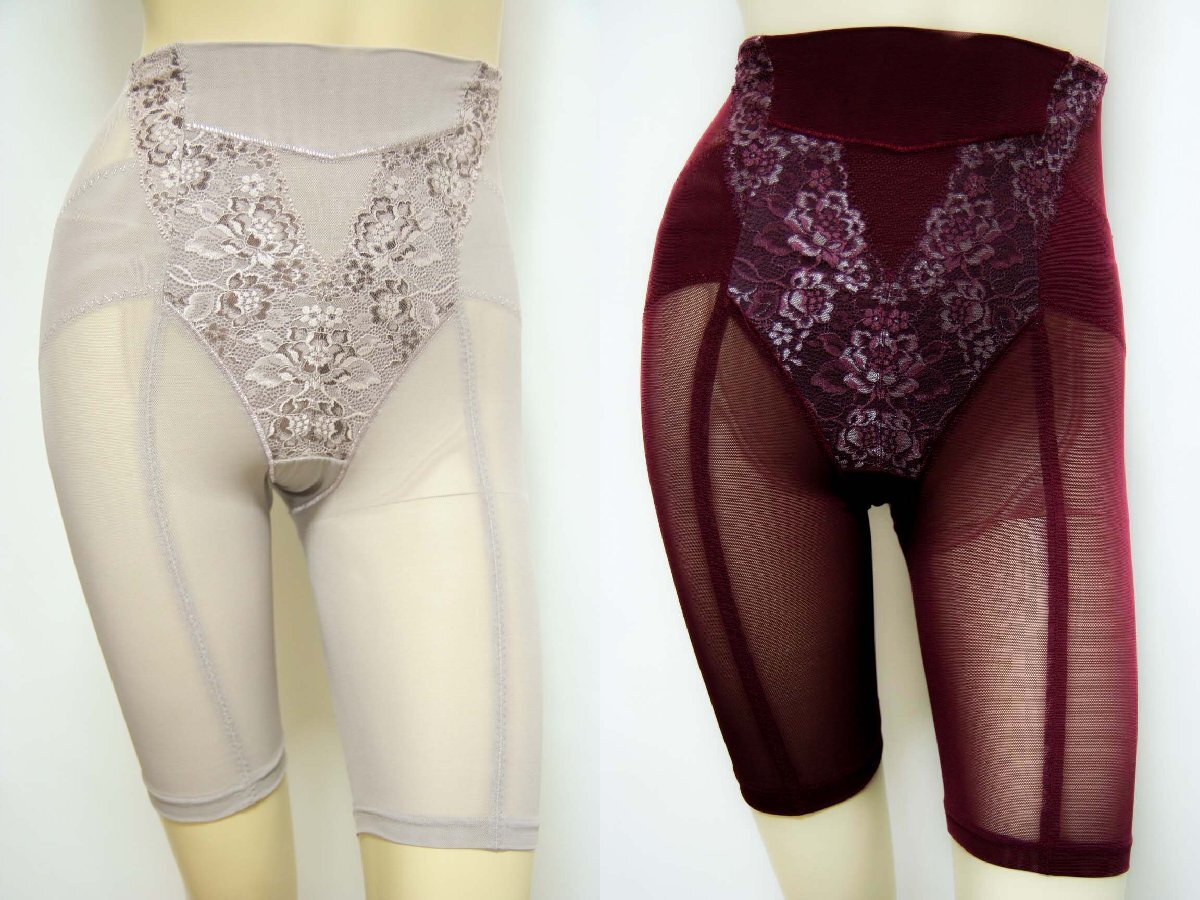 > 送料無料◆超お得2色組◆しっかりサポート◆お腹引き締め◆高級補正【安心と信頼】日本製◆ハイウエスト&ロングガードル(M/グレー&ワイン)
