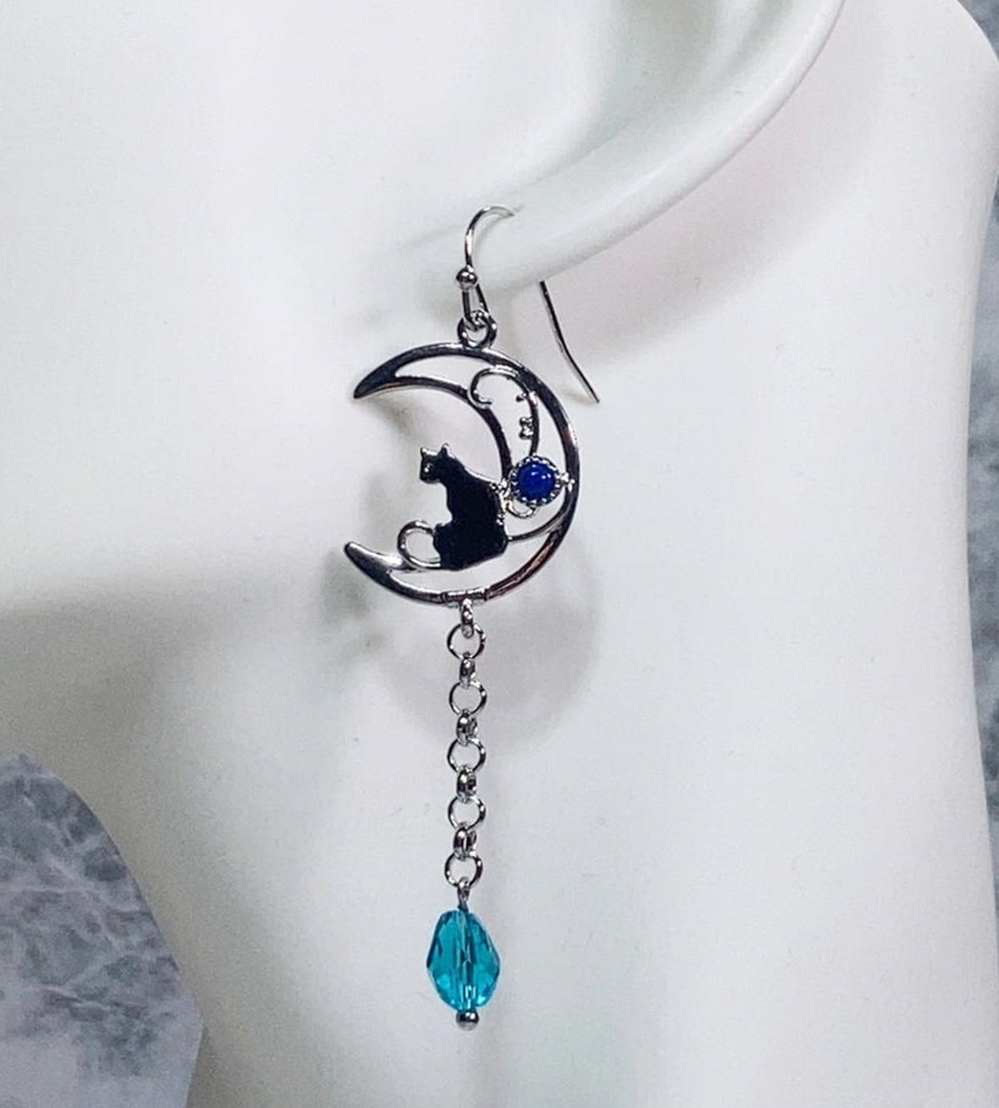 - ◆同梱発送可◆「月に座る猫/ネコ/ねこ ピアス 左右セット 女性用/レディース」fire_sale 【タグ:アクセサリー】