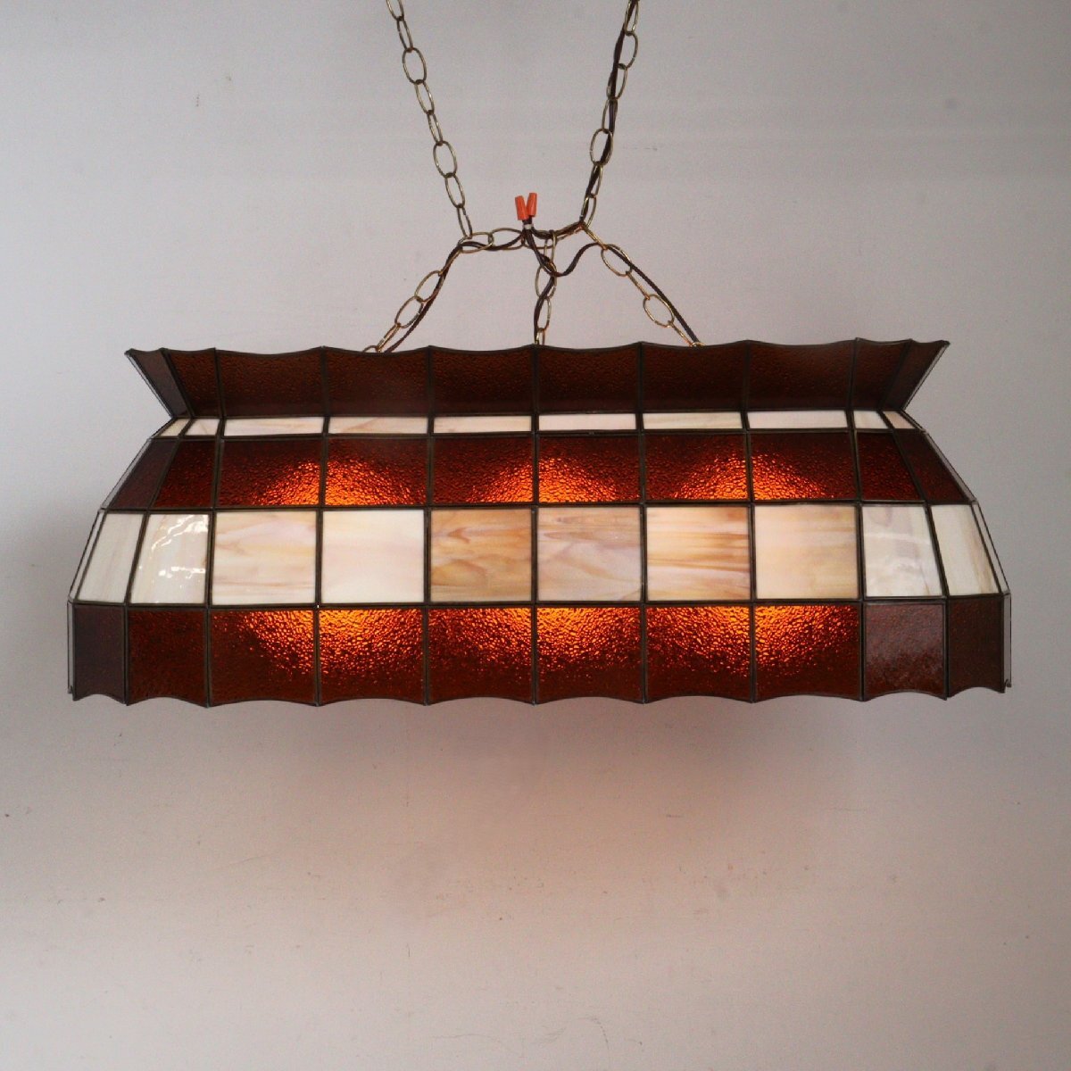 - 希少!60s-70s ヴィンテージ ステンドグラス 3灯式 ペンダントランプ /アメリカ アンティーク 吊り下げランプ 照明 #606-130-107-383
