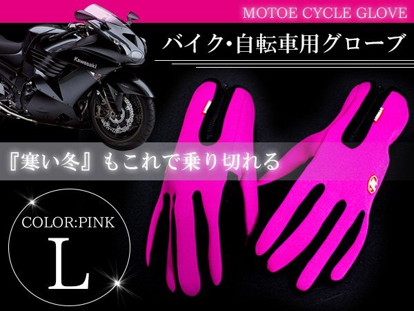 - 防水 防寒グローブ 自転車 バイク タッチパネル対応 L ピンク バイクグローブ 手袋 スマートフォン操作可能! スマホ 携帯
